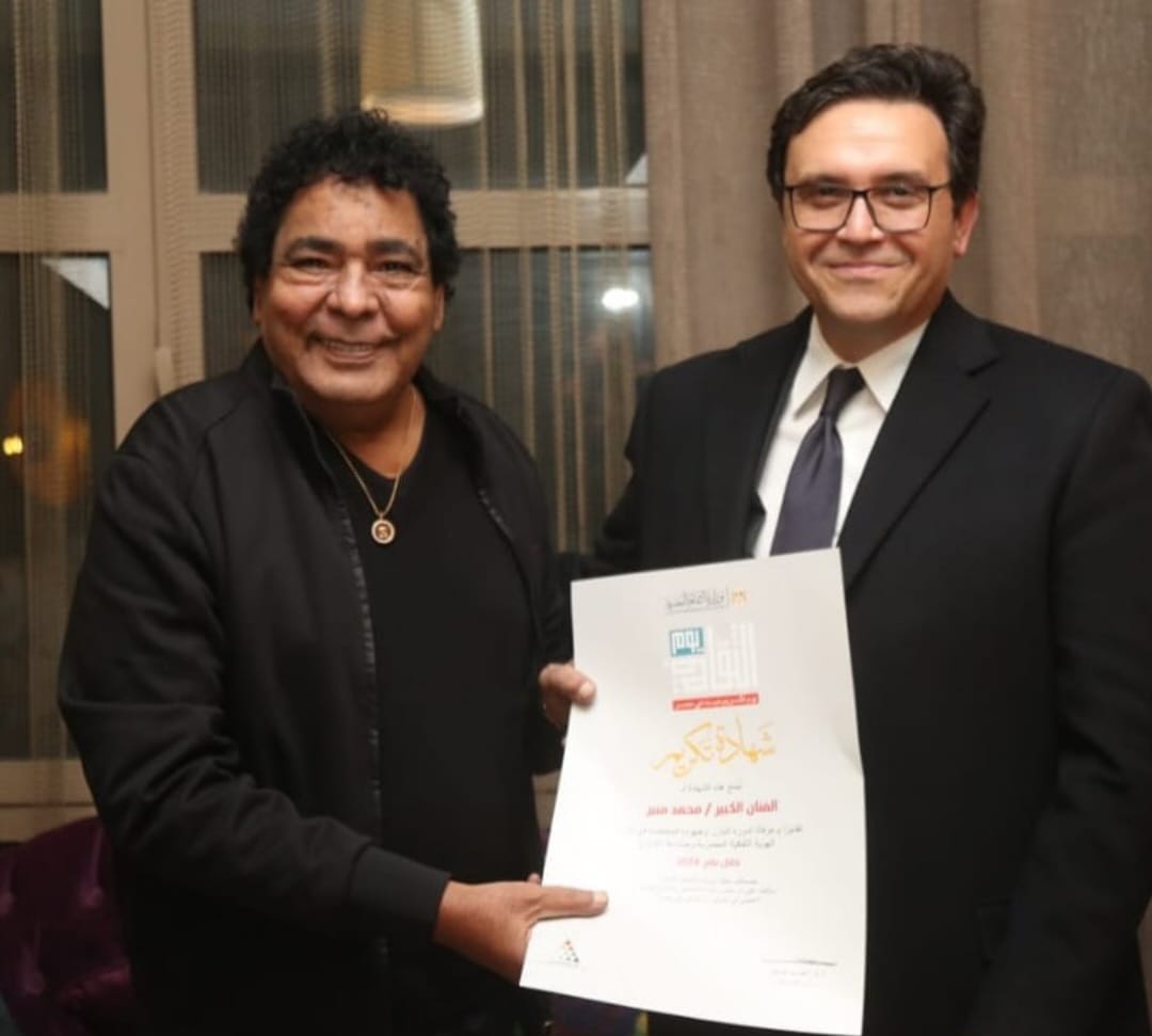 كرم وزير الثقافة الدكتور أحمد فؤاد هنو الكينج محمد منير في منزله، وذلك في يوم الثقافة المصرية الذي أقيم على خشبة المسرح الكبير بدار الأوبرا المصرية.