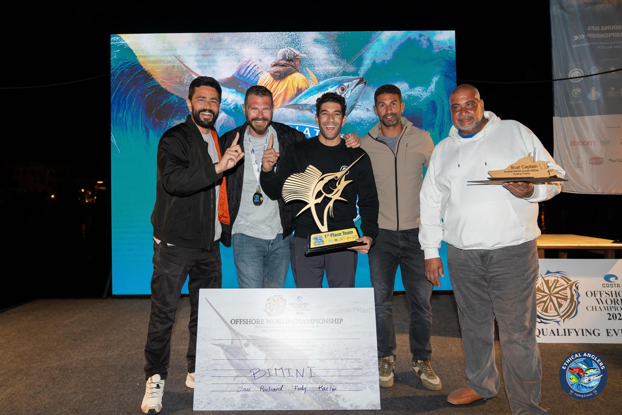 وتربع فريق بيميني من الجونة على عرش المركز الأول، وخطف بذلك بطاقة التأهل الوحيدة والمباشرة للمنافسات العالمية في بطولة كأس العالم للصيد، المقرر إقامتها العام المقبل في كوستاريكا. فيما حمل فريق النوبي لقب الوصيف، وأما فريق سبورتينج فحصل على المركز الثالث.