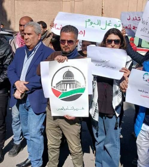 شارك أعضاء من حالة “سوريون ضد الاحتلال” في وقفة احتجاجية كجزء من تنظيمها أمام مبنى الأمم المتحدة بدمشق؛ تنديداً بتصريحات رئيس الوزراء الإسرائيلي بنيامين نتنياهو الذي دعا لنزع السلاح في جنوبي سوريا ومنع أي انتشار للقوات السورية في تلك المنطقة، وطالب المشاركون بوقف الانتهاكات الإسرائيلية في الأراضي السورية مع تصاعد حدة الاعتداءات وتغير طبيعة نشاط الاحتلال في جنوبي البلاد.