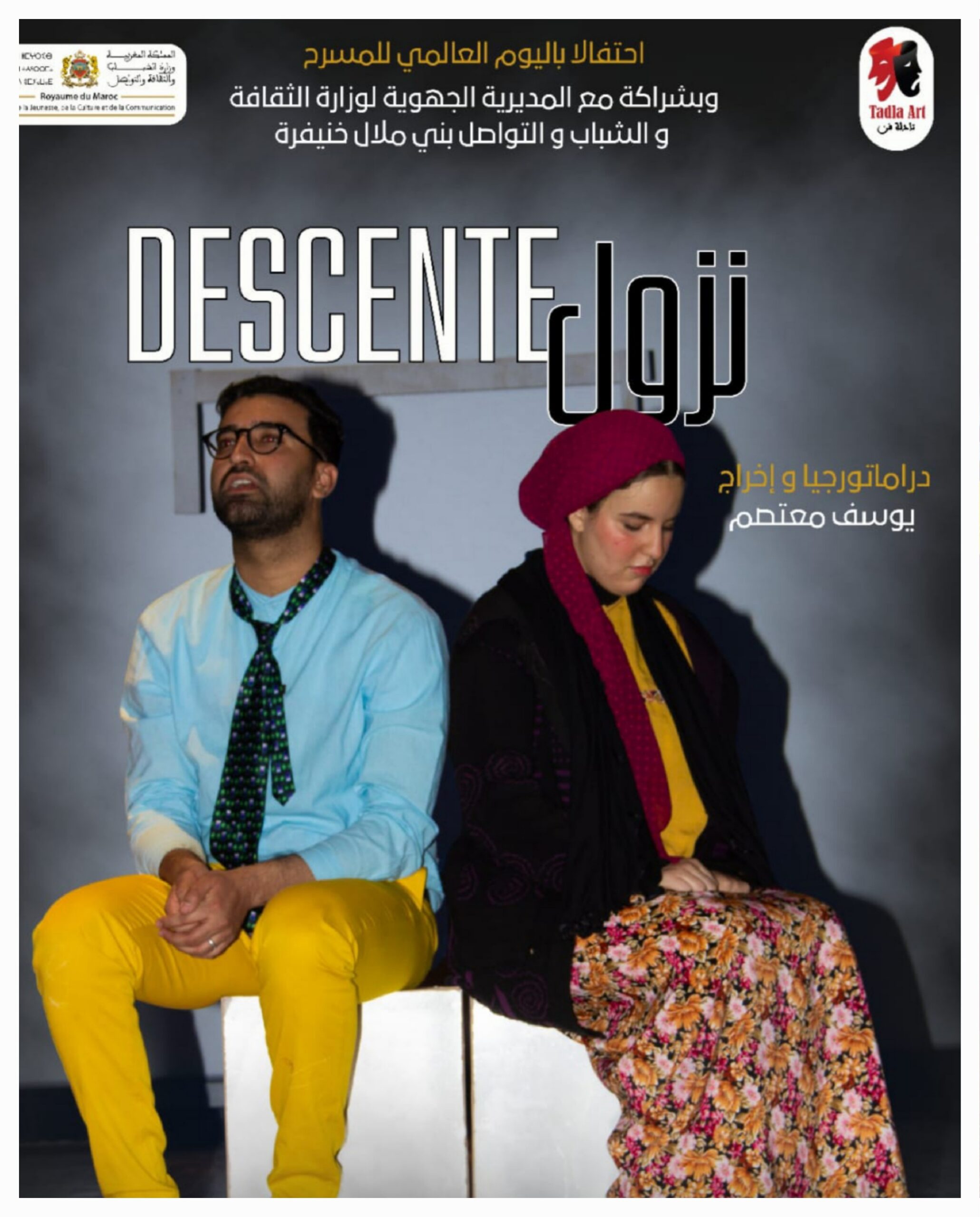 احتفاءً باليوم العالمي للمسرح، وبدعم من المديرية الجهوية لوزارة الثقافة والشباب والتواصل بني ملال خنيفرة، قدمت فرقة تادلة فن عرضها المسرحي “نزول” (Descente)، مساء السبت 29 مارس 2025، وسط حضور جماهيري لافت، تفاعل بشغف مع تفاصيل العرض وأبعاده الفكرية والجمالية.