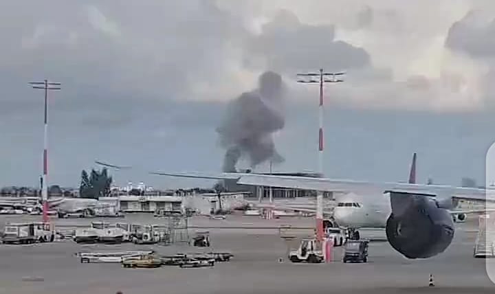 وانتشرت مقاطع فيديو للصاروخ اليمني لحظة إصابته المطار، محدثا تفجيرا ضخما، وحفرة قدرها 25 مترا.