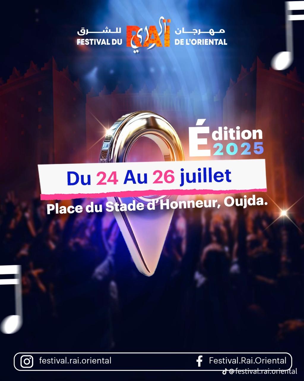 تستعد مدينة وجدة لاستقبال فعاليات مهرجان الراي للشرق 2025، الذي تنظمه جمعية تدبير الشؤون الثقافية لعمالة وجدة أنجاد بشراكة مع مجموعة من الفاعلين الثقافيين، خلال الفترة من 24 إلى 26 يوليوز الجاري، تحت شعار: