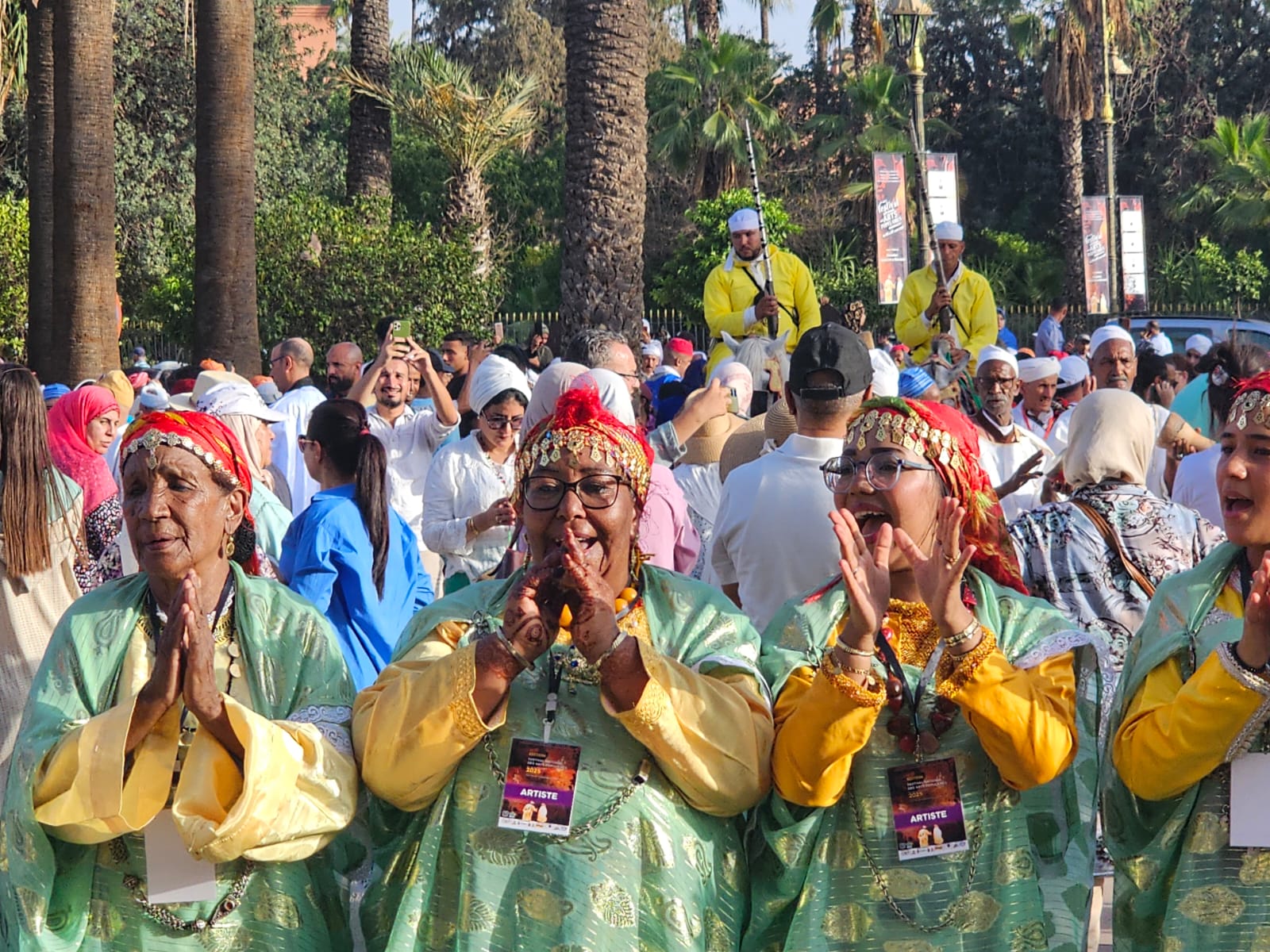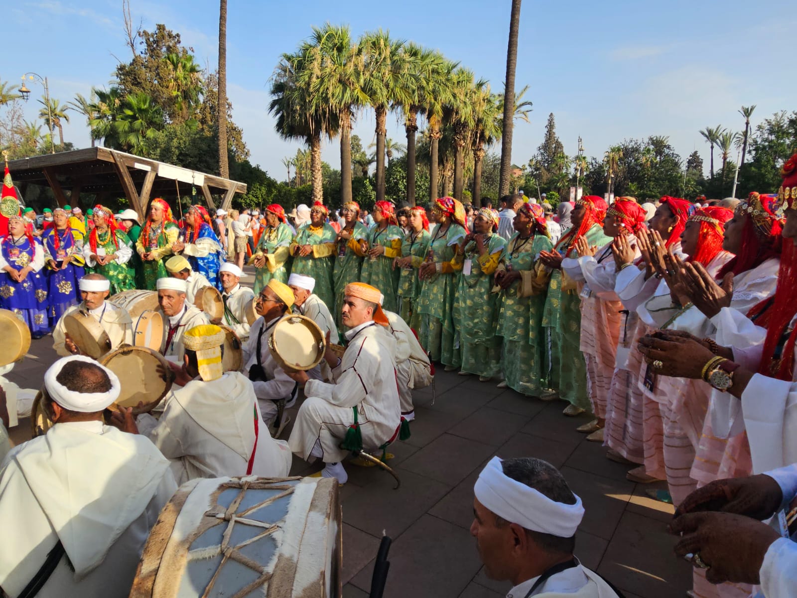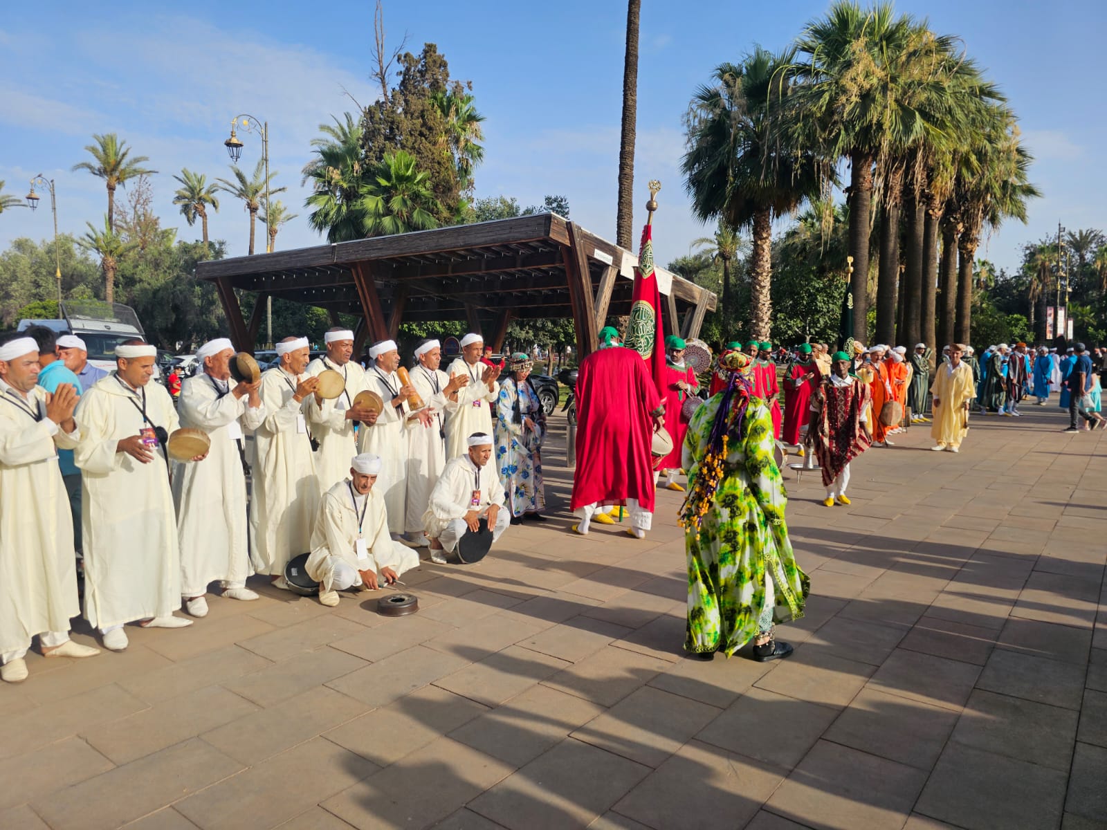 انطلق من ساحة قصر البلدية، موكب مهيب وسط المدينة العتيقة، مرورا بساحة الكتبية قبل أن يستقر بمحيط قصر البديع، حيث اجتمعت الفرق الشعبية من شمال البلاد إلى جنوبها، ومن شرقها إلى غربها، لتحمل معها نكهات الجبال والصحراء والسواحل والسهول، وتنسج من تنوعها سيمفونية جماعية تُغني المشهد الثقافي المغربي.