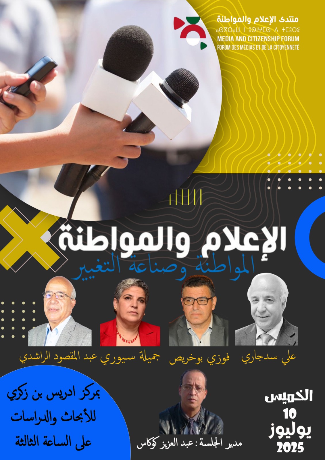 ينطلق، يوم الخميس 10 يوليوز 2025، أول لقاء من سلسلة جلسات منتدى الإعلام والمواطنة، وذلك بمركز إدريس بنزكري للدراسات والأبحاث بيعقوب المنصور بالرباط، تحت عنوان: “المواطنة وصناعة التغيير”، في تمام الساعة الثالثة زوالاً.