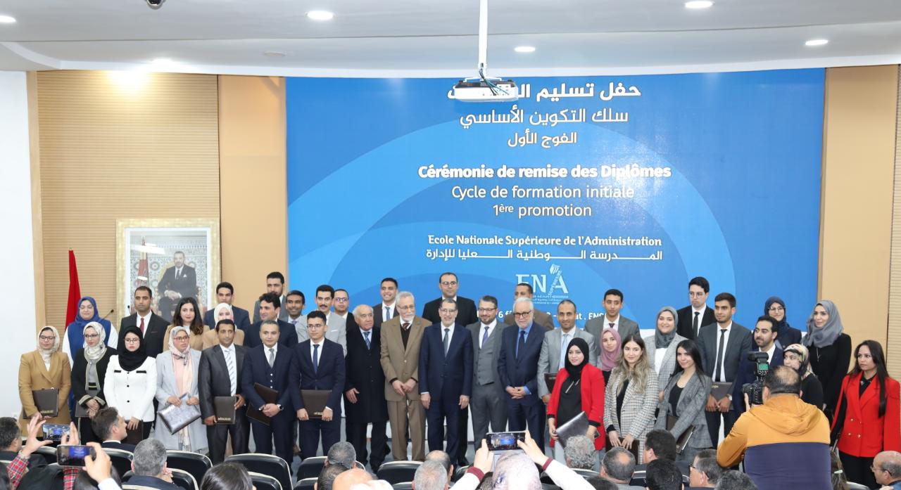 و شدد رئيس الحكومة بمناسبة حفل تخرج الفوج الأول من طلبة سلك التكوين الأساسي للمدرسة الوطنية العليا للإدارة يوم الخميس 6 فبراير 2020 بالرباط، على أهمية العمل الذي تقوم به المدرسة الوطنية العليا للإدارة، التي أصبحت منذ سنة 2016 تحمل هذا الإسم، بعد دمج كل من المدرسة الوطنية للإدارة والمعهد العالي للإدارة.