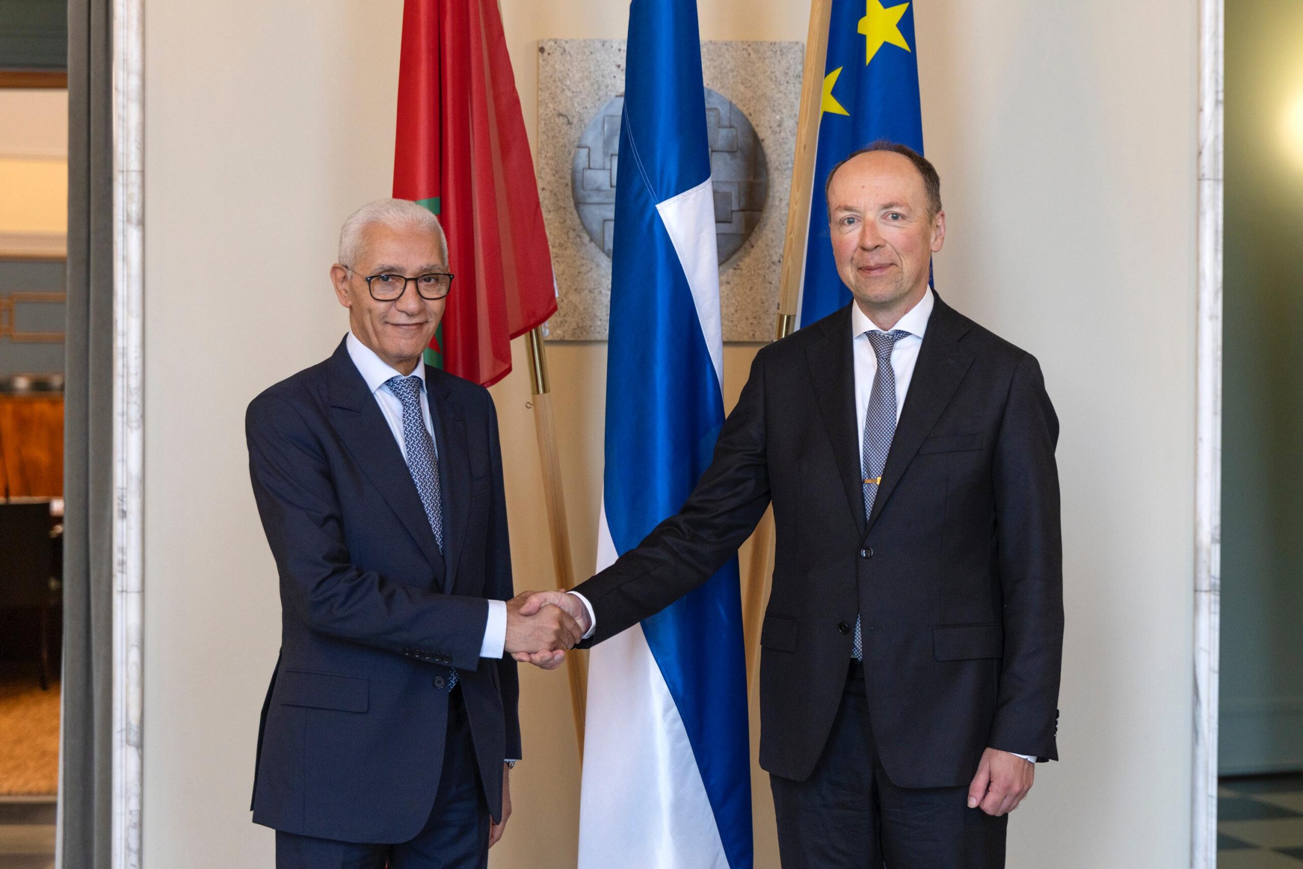 ومن جانبه، ثمّن الطالبي العلمي متانة علاقات الصداقة المغربية–الفنلندية، مشيرًا إلى ما يجمع البلدين من قيم مشتركة ترتبط بالديمقراطية وحقوق الإنسان والحرية. كما عبّر عن تقدير المملكة لموقف فنلندا الداعم لوحدتها الترابية ولمبادرة الحكم الذاتي كحل واقعي وذي مصداقية للنزاع الإقليمي حول الصحراء المغربية.