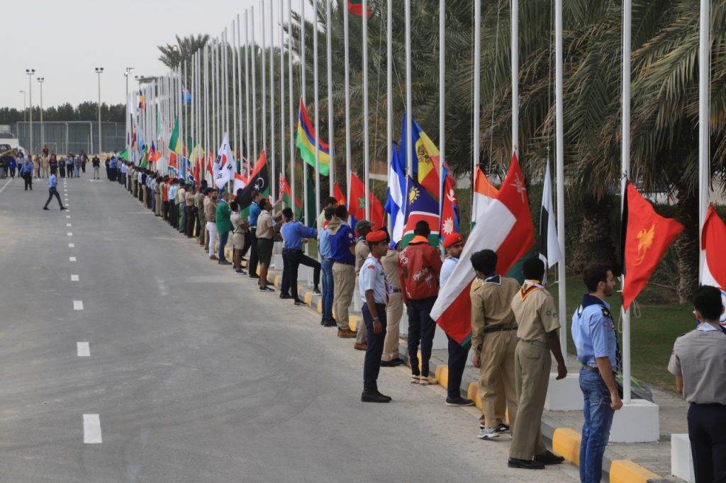 رفع 250 جوالاً وقائداً من مختلف الأقاليم الكشفية، أعلام الدول التي ينتمون إليها، وعددها 94 دولة مشاركة في اللقاء الكشفي الدولي التاسع 2020، صباح أمس، الذي تستضيفه الشارقة برعاية صاحب السمو الشيخ الدكتور سلطان بن محمد القاسمي عضو المجلس الأعلى، حاكم الشارقة، راعي الحركة الكشفية في الشارقة، حتى التاسع عشر من فبراير/شباط الجاري، وسط روح مملوءة بالوطنية والشموخ، بحضور اللواء عبدالله السويدي المشرف العام للجنة العليا المنظمة، ووفد المنظمة الكشفية العربية، وبرئاسة عمرو حمدي الأمين العام للمنظمة، المدير الإقليمي، الذي تحدث مشجعاً الجوالة، ومتمنياً لهم قضاء أجمل الأوقات في دولة الإمارات والشارقة الباسمة.