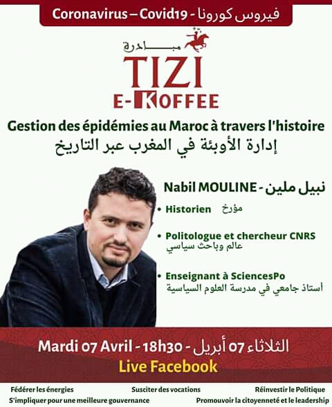 تفاعلا مع موضوع وباء كورونا نظمت مبادرة طارق ابن زياد جلسة حوارية عبر تقنية المباشر على موقع التواصل الاجتماعي “الفايسبوك” مع المؤرخ و الباحث في العلوم السياسية “نبيل ملين” حول موضوع ادارة الاوبئة في المغرب عبر التاريخ، و ذلك يوم الثلاثاء 07 ابريل 2020.