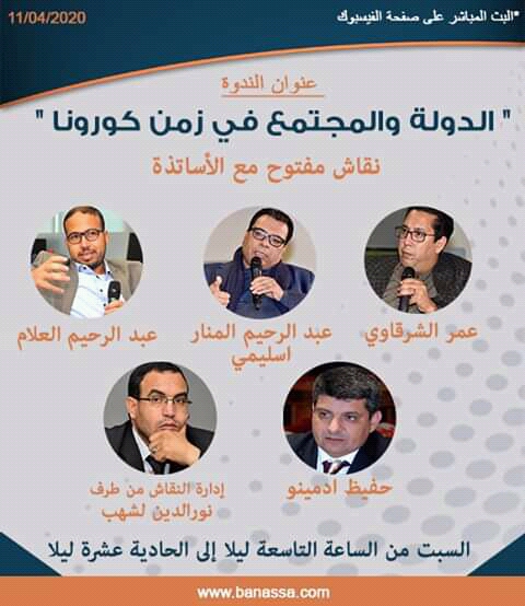 وجاء هذا التفاعل للأستاذ “عبد الرحيم العلام” عبر مداخلته مساء البارحة السبت، ضمن الندوة المنظمة عبر تقنية المباشر من قبل موقع “بناصا” و الذي وجه الدعوة لمجموعة من اساتذة العلوم السياسية للتفاعل حول موضوع “الدولة و المجتمع في زمن كورونا”.